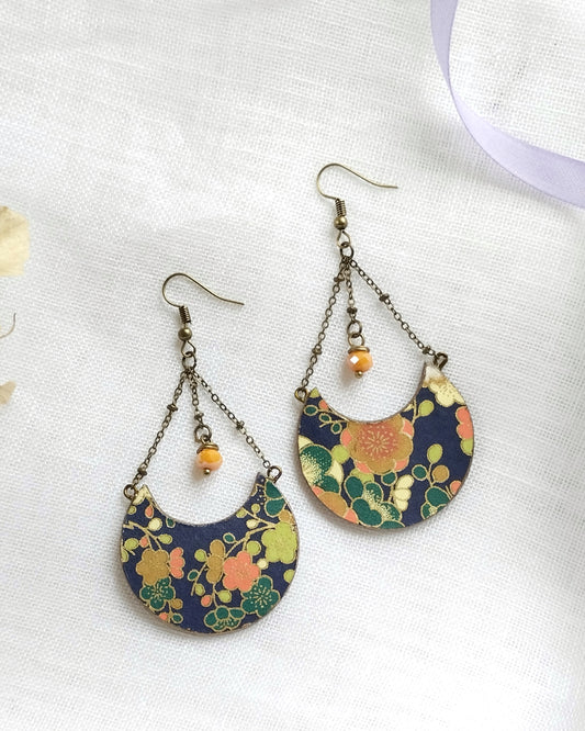 Orecchini di carta pendenti in carta giapponese chiyogami blu - verde arancione - modello INDIRA